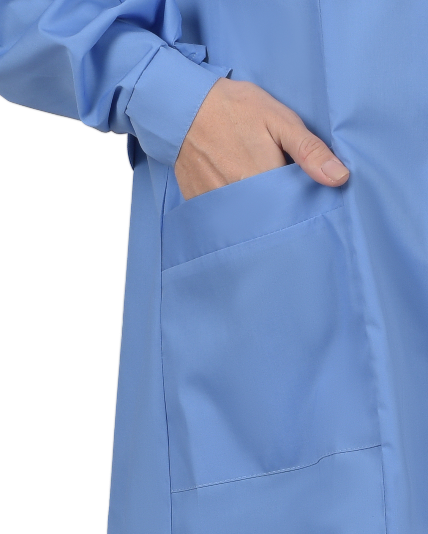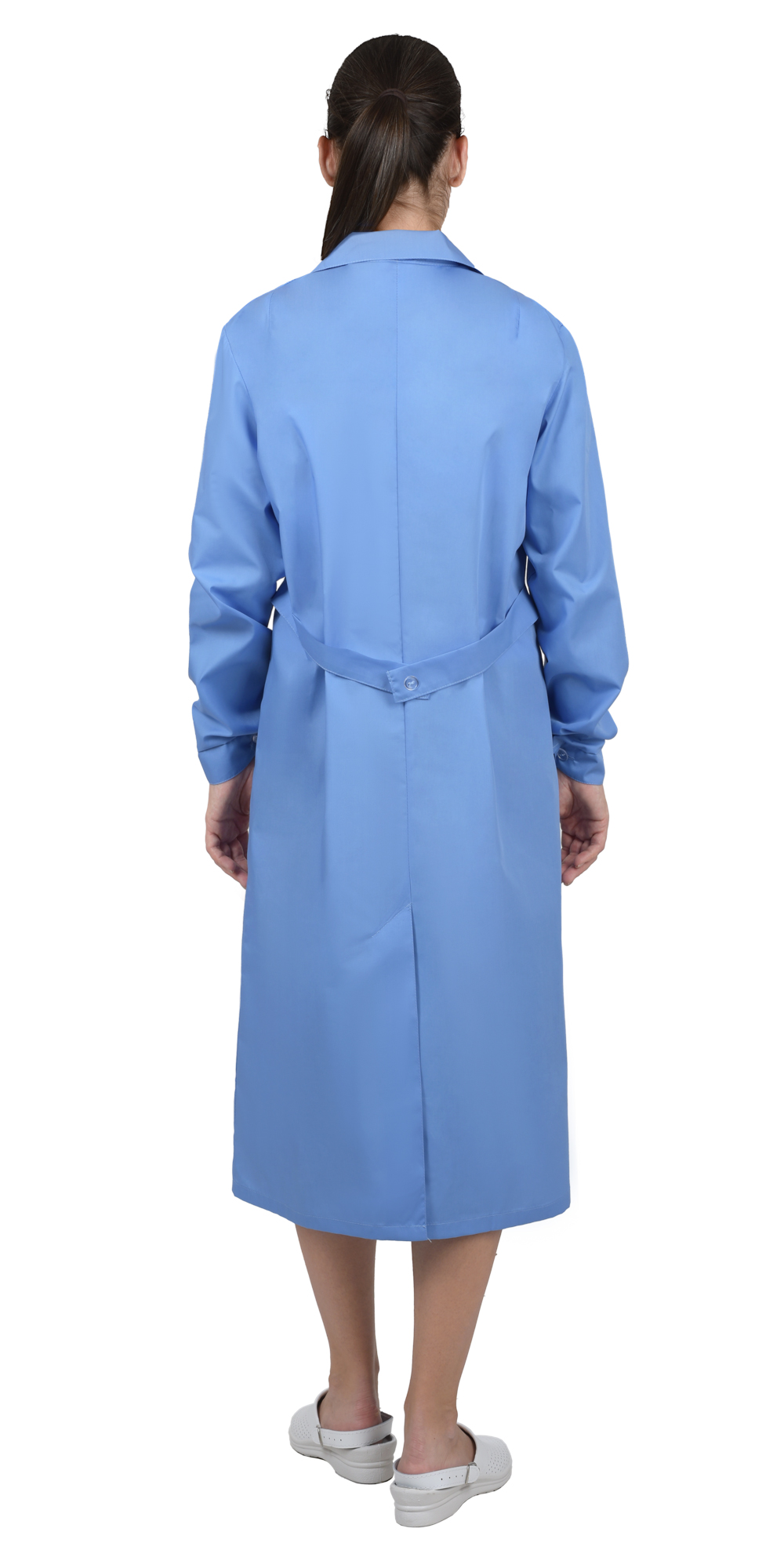 Халат с рельефами женский (длинный рукав, на пуговицах), цвет: голубой, ткань: смесовая