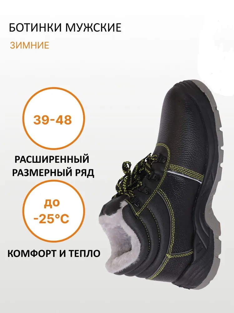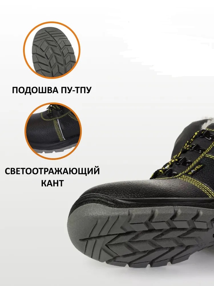 В холодные осенние дни, когда становится все сложнее сохранять комфорт и защиту для ног, рекомендуем обратить внимание на этот утепленный вариант спец обуви. Мужские зимние рабочие ботинки — это прекрасный вариант для зимы и в демисезонный период осень весна. Эта теплая классическая пара ботинок, выполненная из кожи с застежкой на шнурки станет незаменимым аксессуаром для активных и энергичных мужчин, которые ценят комфорт и качество. Высокие зимние ботинки с мехом - это не только необходимый элемент спецодежды, но и надежная рабочая обувь во время работы в холодную погоду или во время активного отдыха на природе. Используя специальное покрытие, верх обуви обеспечивает защиту от ОПЗ, МВО. Подошва двухслойная, изготовлена из ПУ-ТПУ и способна сохранять свои свойства в широком диапазоне температур. Кроме того, она обладает стойкостью к воздействию масел, сырой нефти и нефтепродуктам, что делает обувь идеальной для работы в особых условиях. Подошва также надежно проклеена и закреплена литьевым методом, что обеспечивает дополнительную прочность, долговечность и герметичность. Внутренняя подкладка обуви выполнена из искусственного меха, что обеспечивает комфорт и тепло даже в самые суровые морозы до -25 градусов. Ботинки оснащены металлоподносками, предохраняющими ноги от удара и имеющими удельное сопротивление деформациям не менее 200 Дж. Эта особенность делает обувь идеальной для тех, кто занимается физическим трудом или проводит время на охоте или рыбалке. Антипрокольная стелька дополнительно защищает стопы ног от проколов, порезов, сильных ударов и прочих производственных травм. Защитная кожаная спецобувь с металлическим подноском и антипрокольной стелькой будет отличным выбором и для тех мужчин, кто работает в особых условиях, где необходима надежная защита. Обувь предназначена для работы в нефтегазовой, горнодобывающей, энергетической, химической промышленности, на транспорте, в агропромышленном комплексе и сервисных службах.