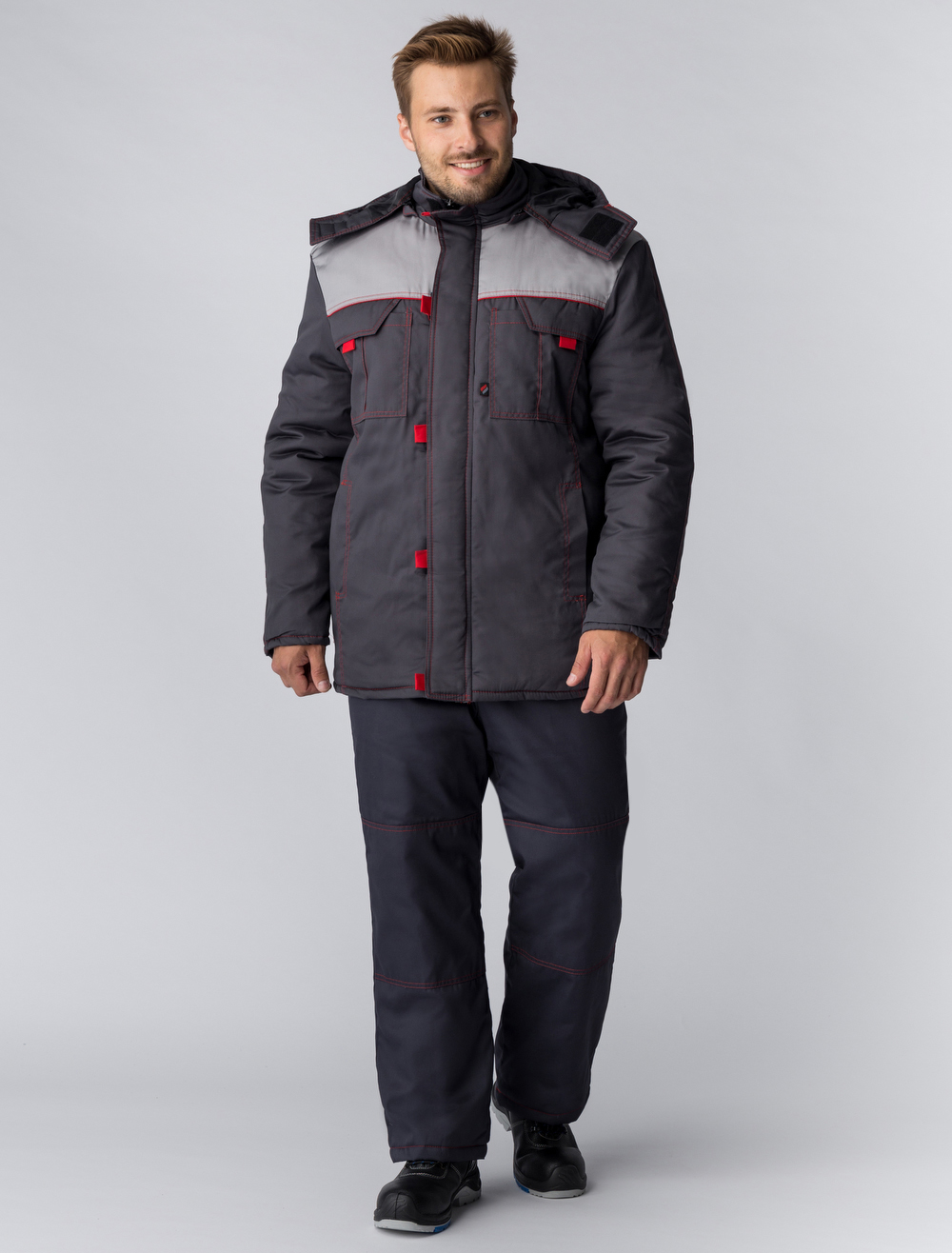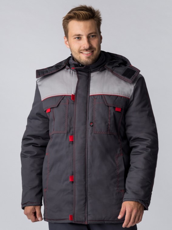 Зимняя куртка "СИРИУС-ФАВОРИТ" мужская, удлиненная, цвет: т-серый с серым, ткань: смесовая