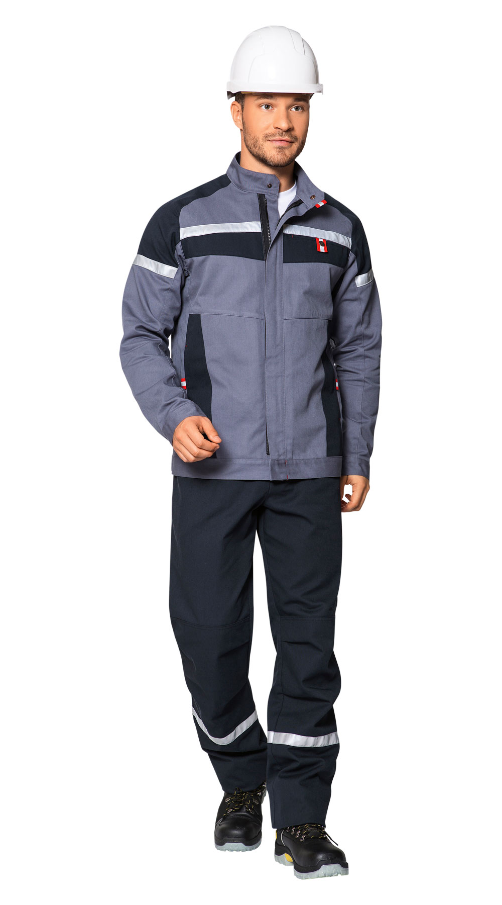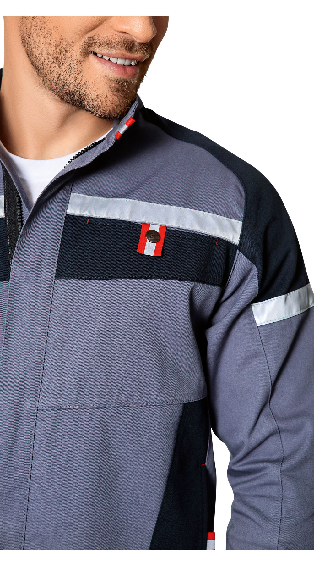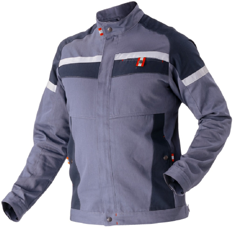 Куртка ТЕХНОЛОГ выполнена в практичном сером цвете с темно-серыми вставками. Каждая деталь конструкции выверена: светоотражающие элементы увеличивают безопасность в темное время суток, вставки на спинке повышают удобство при работе в любом положении рук, хлястики и манжеты на кнопках помогают отрегулировать изделие в поясе и рукавах.