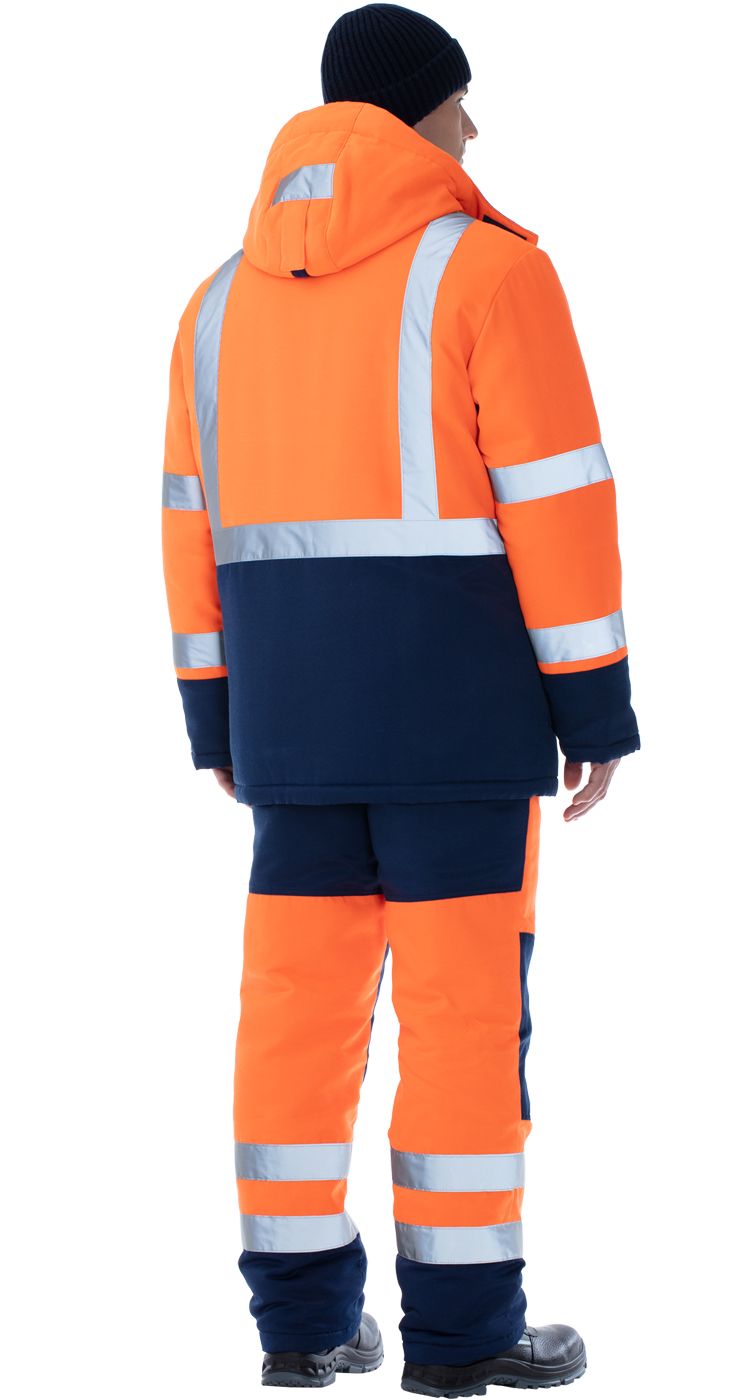Световозвращающие полосы на полочке, спинке, рукавах куртки и по низу полукомбинезона для обеспечения безопасности в условиях плохой видимости.