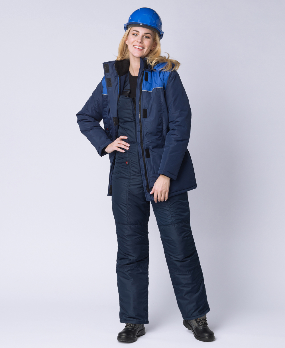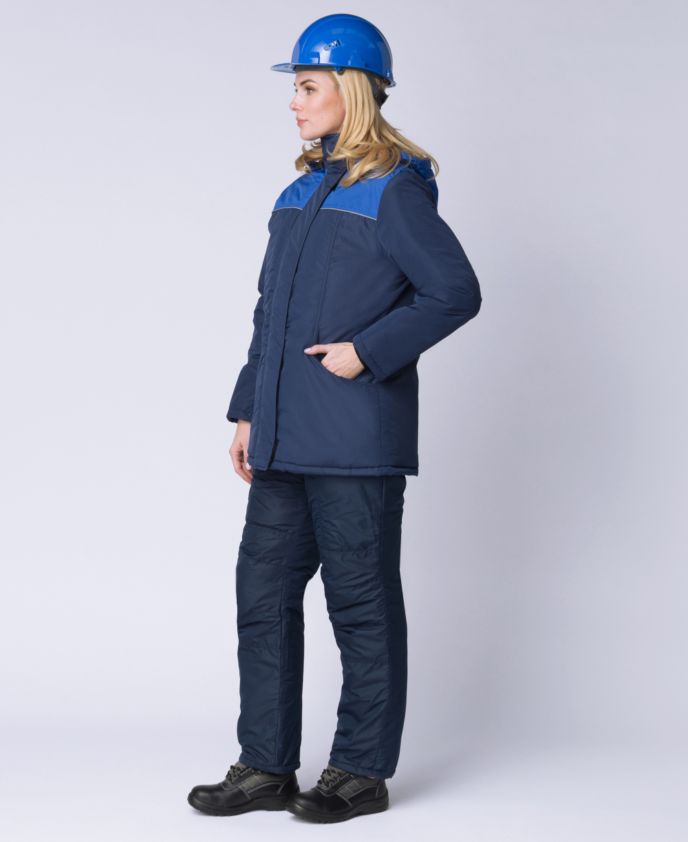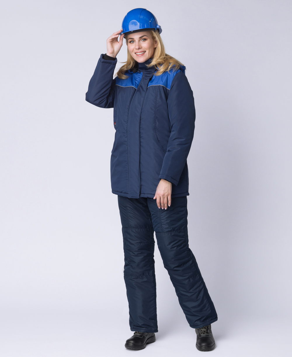 Куртка прямого силуэта с центральной застёжкой на тесьму – «молния», с одним утеплённым ветрозащитным клапаном, застёгивающиеся на ленту «контакт» и одной внутренней ветрозащитной планкой. Полочки и спинка с кокетками из отделочной ткани и светоотражающем кантом, входящим в шов притачивания кокеток. Рукава втачные, с трикотажной манжетой