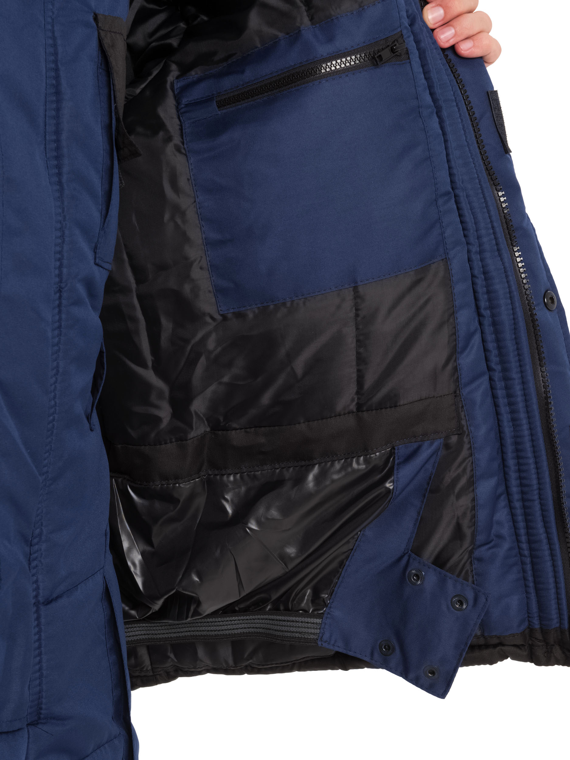 Внутренняя ветрозащитная юбка с кнопками предотвращает проникновение холодного воздуха.