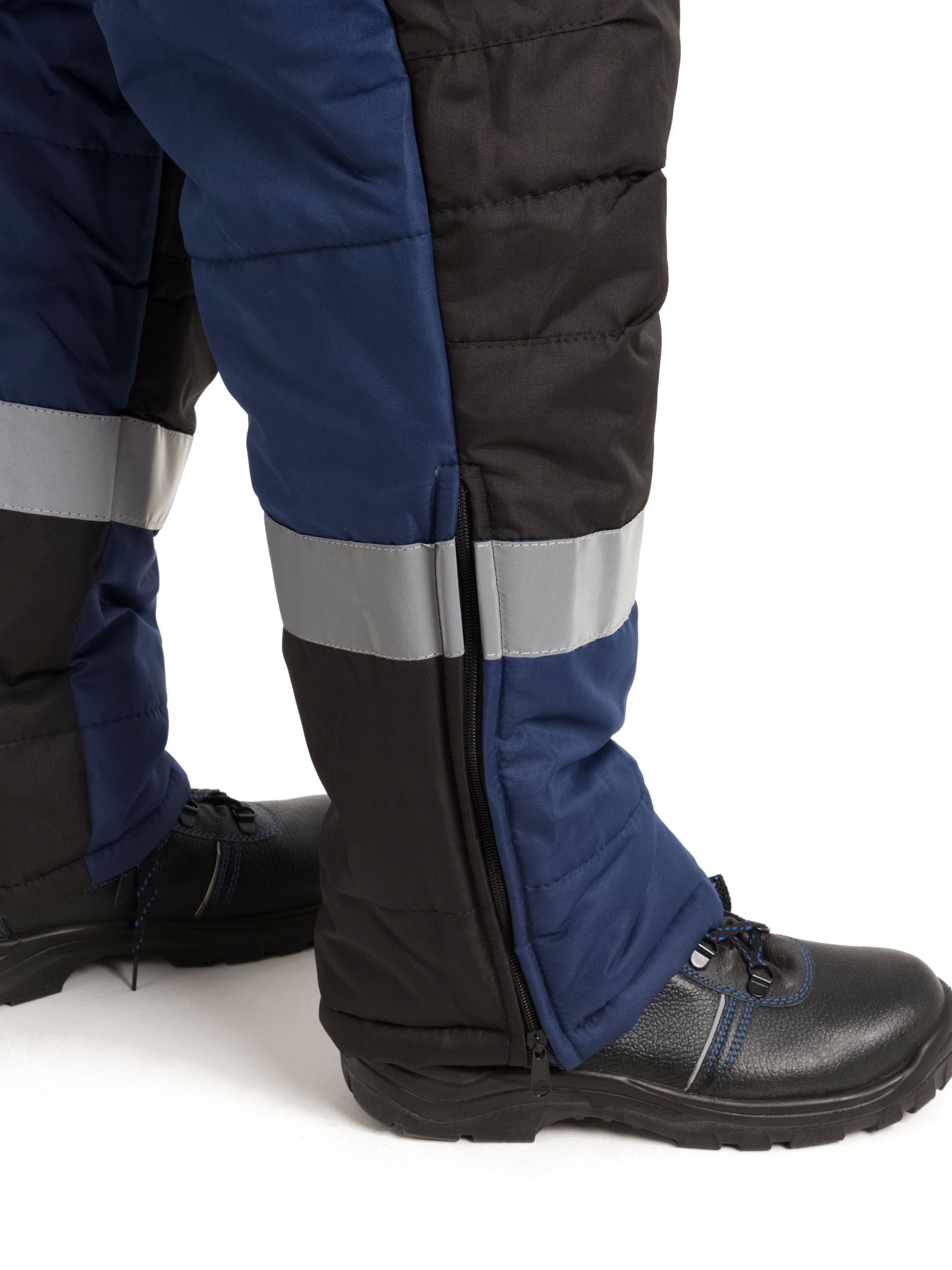 Низ брючин дополнен разрезами на молниях и внутренними накладками, что облегчает процесс надевания на зимнюю обувь.