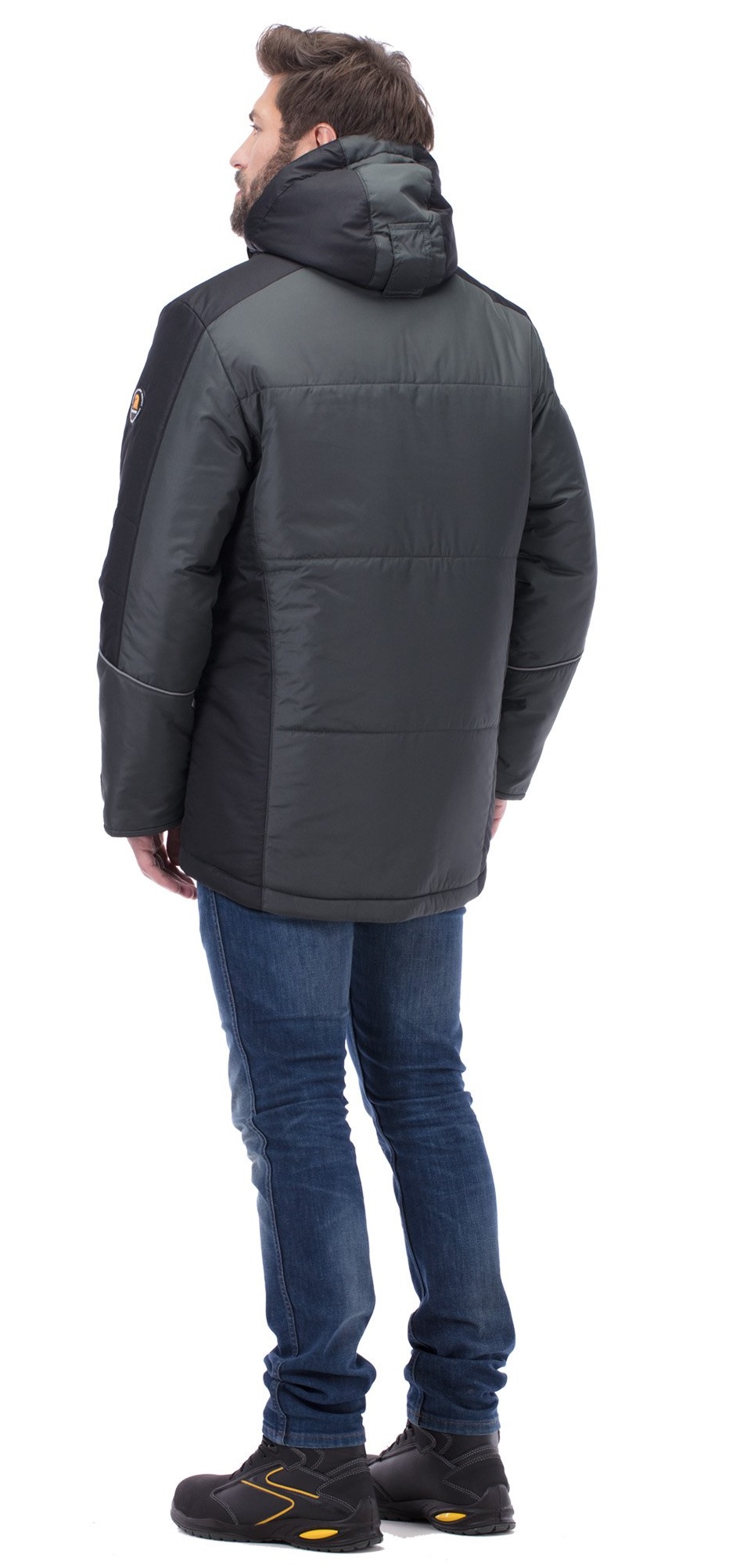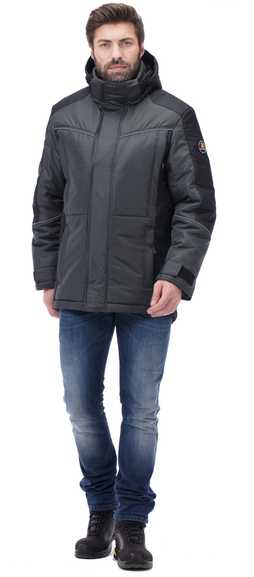 Зимняя куртка "КОРСАР" мужская, удлиненная, утепленная, цвет: серый с черным, ткань: 100% ПЭ
