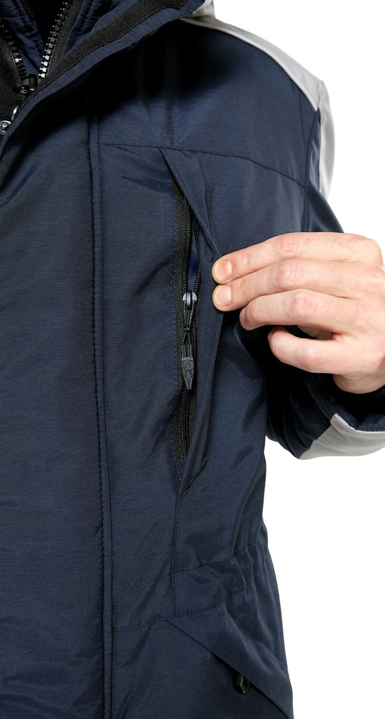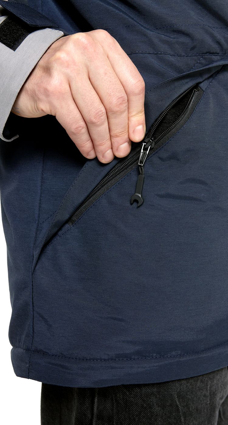 Для всех мелочей предусмотрено продуманное размещение: на груди — потайной вертикальный карман на молнии, идеальный для хранения смартфона или документов; внизу — вместительные карманы под планками на молниях, которые легко открываются даже в перчатках.