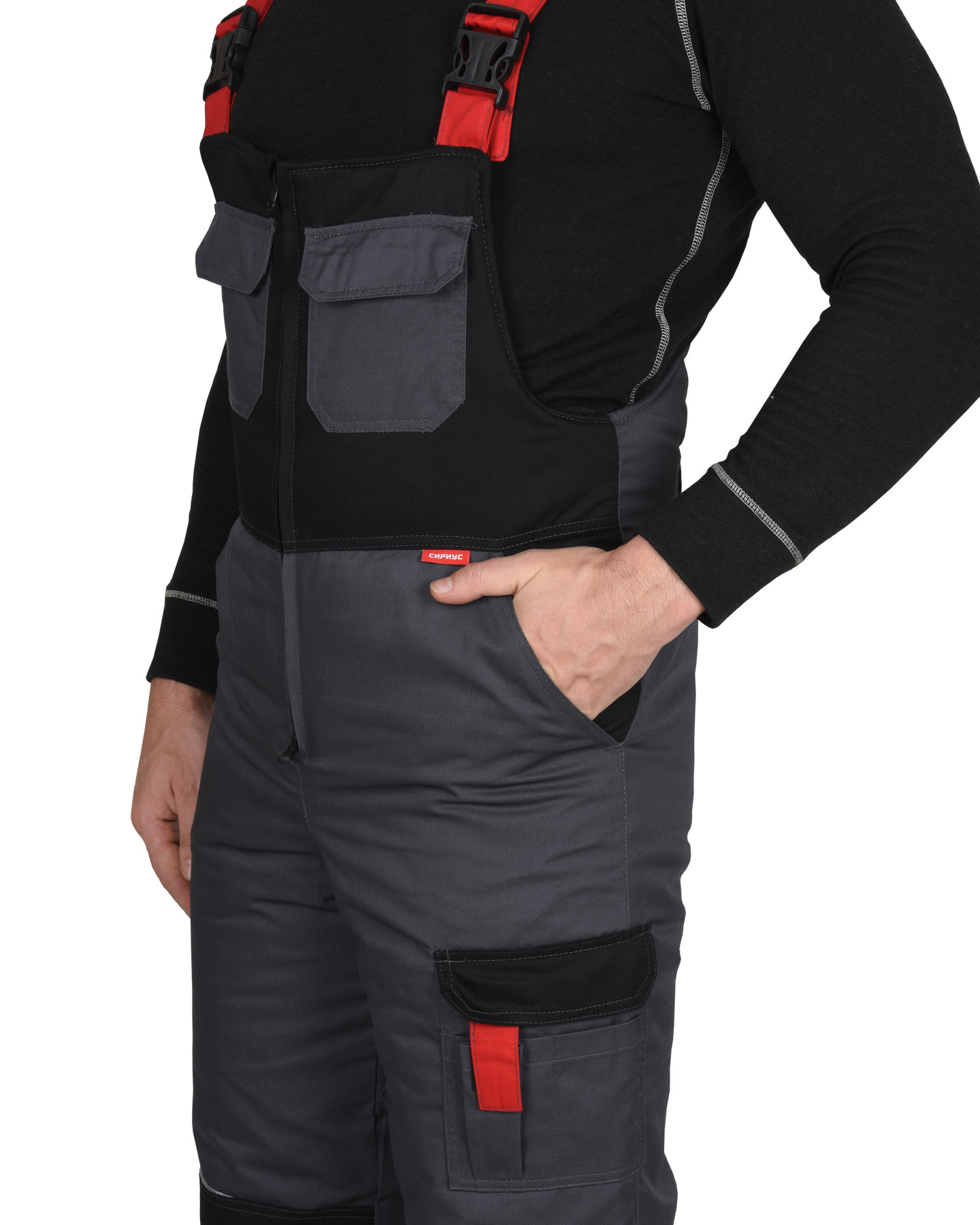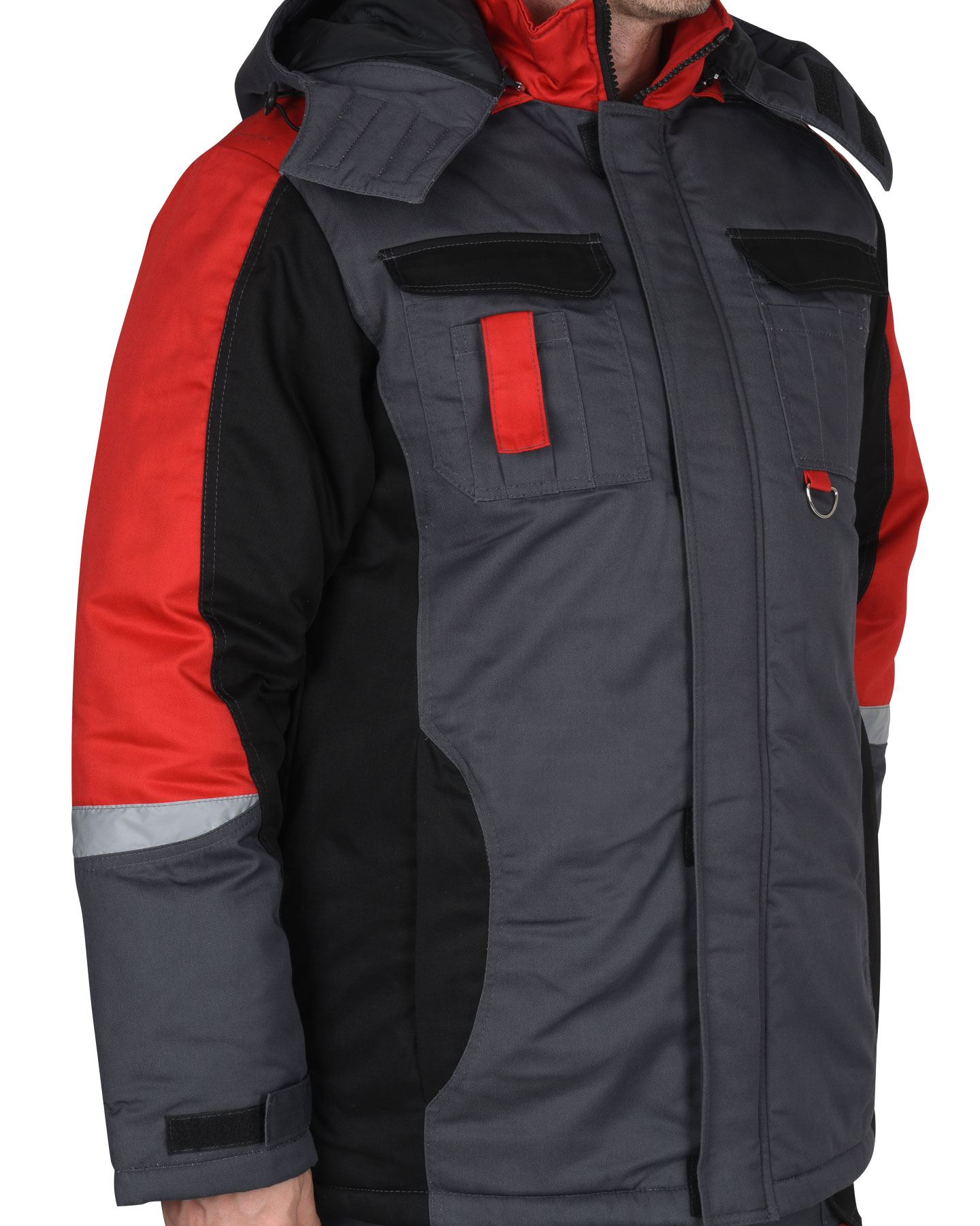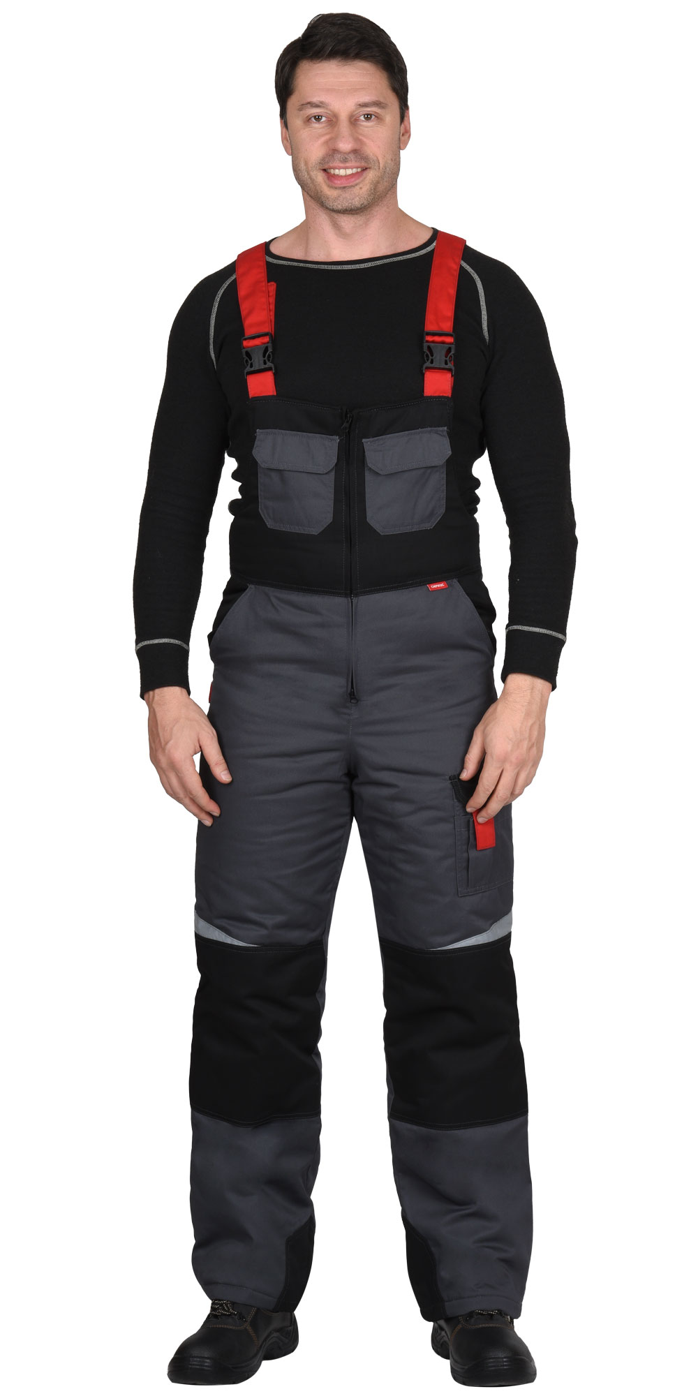Зимний костюм "СИРИУС-ФАВОРИТ-МЕГА" мужской, утепленный (куртка и п/к), т.-серый с черным и красным