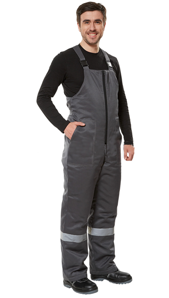 Костюм мужской рабочий состоит из куртки и брюк. Куртка с супатной застежкой на пуговицы,отложной воротник из искусственного меха,регулировка объема по талии,широкие световозвращающие полосы по низу кокеток и рукавов,накладные карманы с косым входом, закрытым клапаном в нижней части куртки,съемный капюшон с регулировкой объема по лицевой и затылочной части, брюки с застежкой на молнию, с высокой утепленной спинкой и съёмными бретелями на пуговицах,пояс брюк на пуговицах со шлевками,накладные карманы с косым входом на передних половинках брюк, широкие световозвращающие полосы по низу брючин.