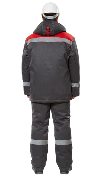 Цвет тсерый с красным. Материалы: Ткань верха смесовая, 210 гм2.Подкладка 100% полиэфир. Утеплитель: синтепон, 100% полиэфир куртка 400 гм, брюки 300 гм.