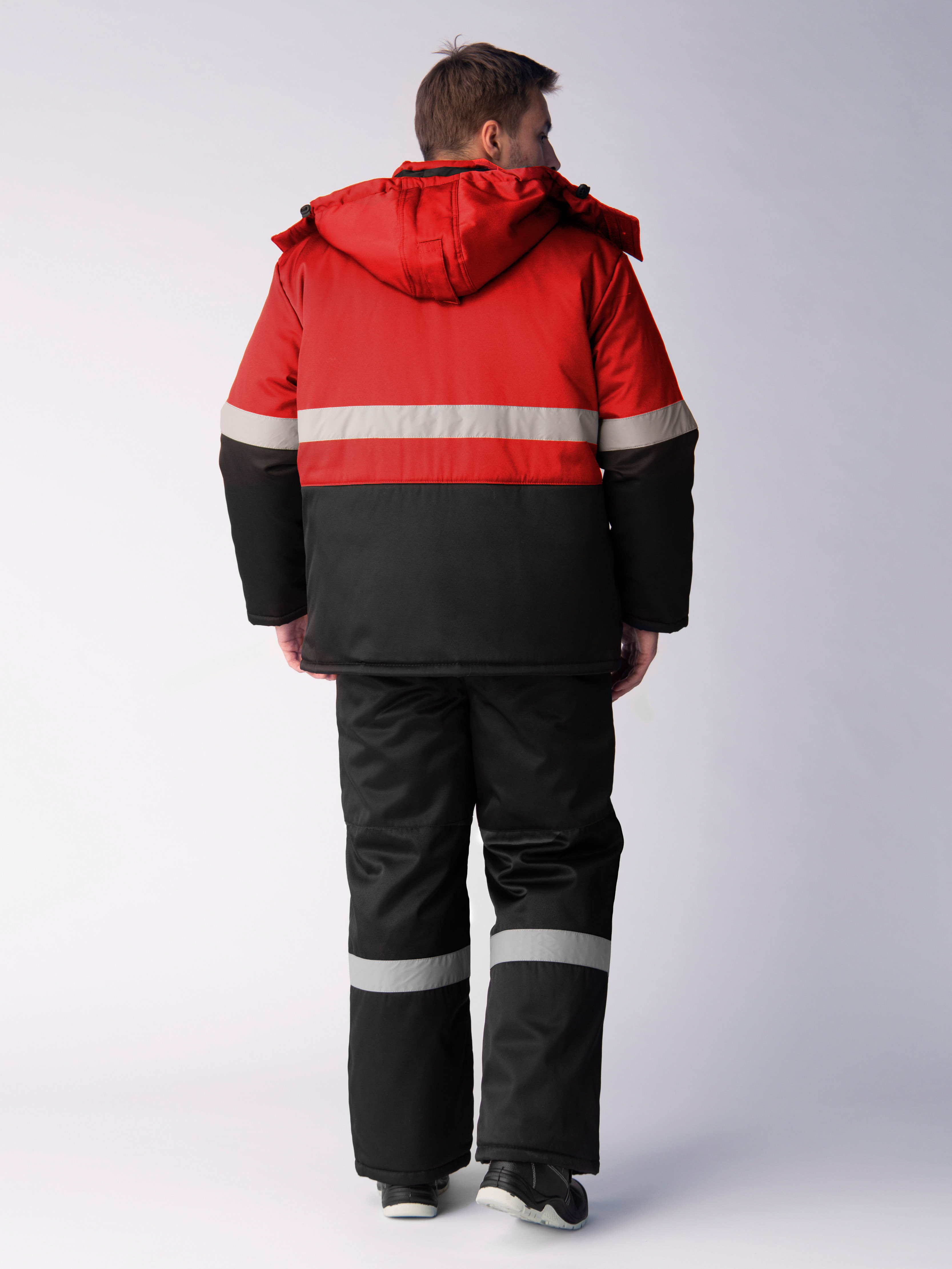 Зимний костюм "НОРДХАРД-2 СОП" мужской, утепленный (куртка и полукомбинезон), цвет: черный с красным