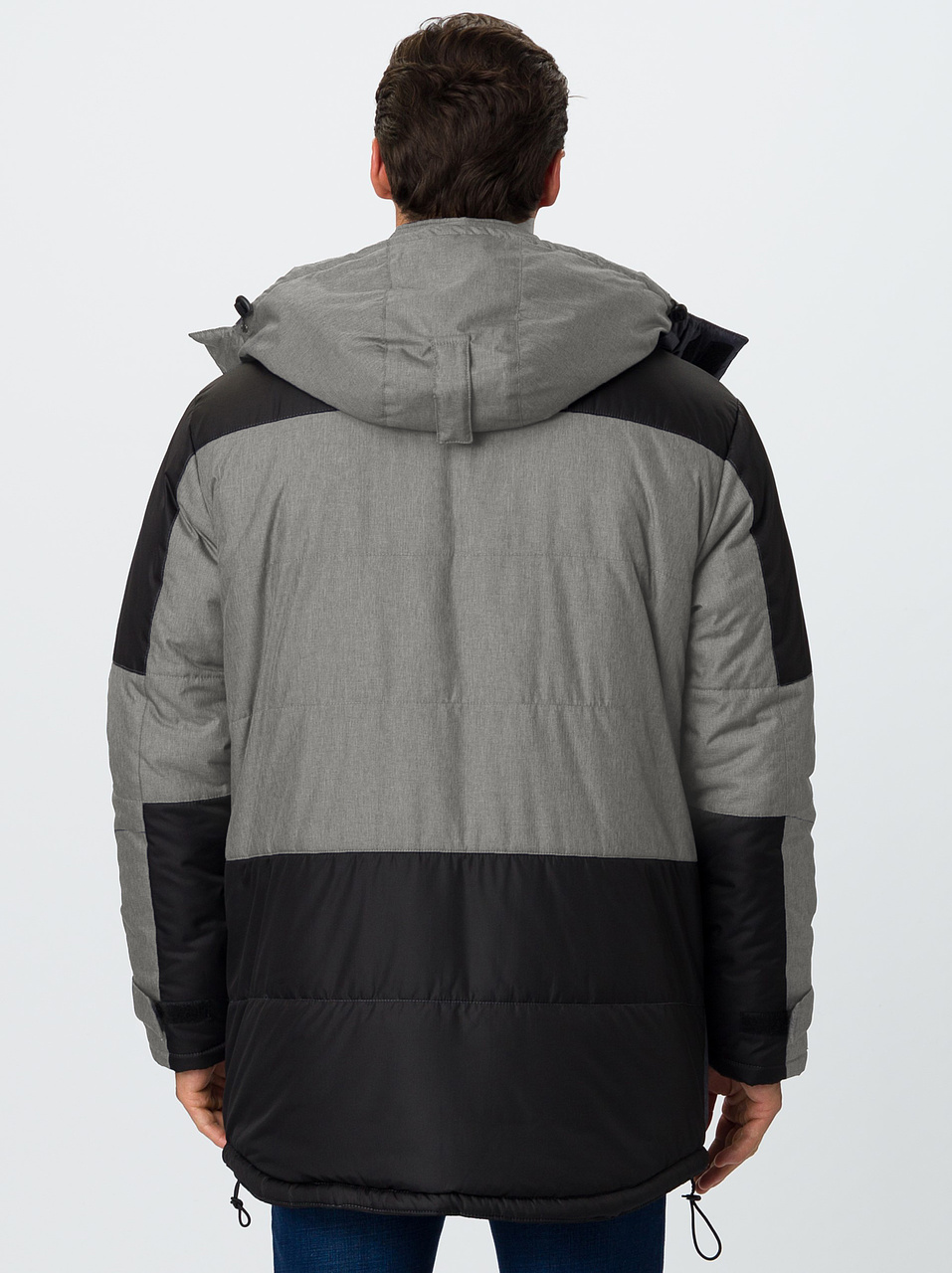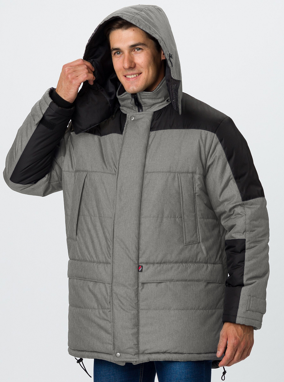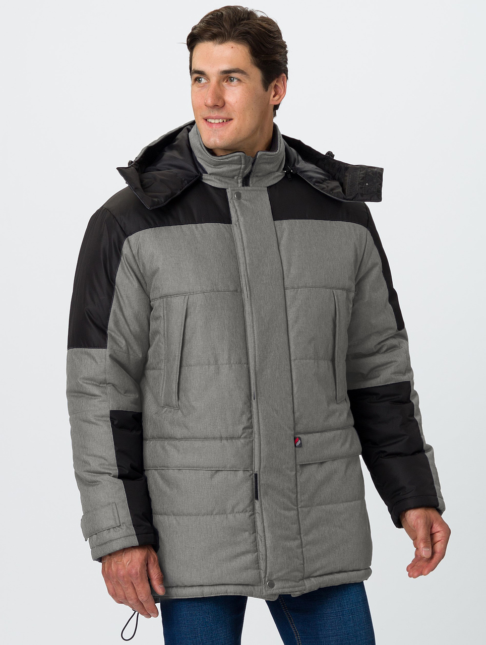 Зимняя куртка "ПРЕМИУМ" мужская, удлиненная, утепленная, цвет: серый с чёрным, ткань: 100% ПЭ